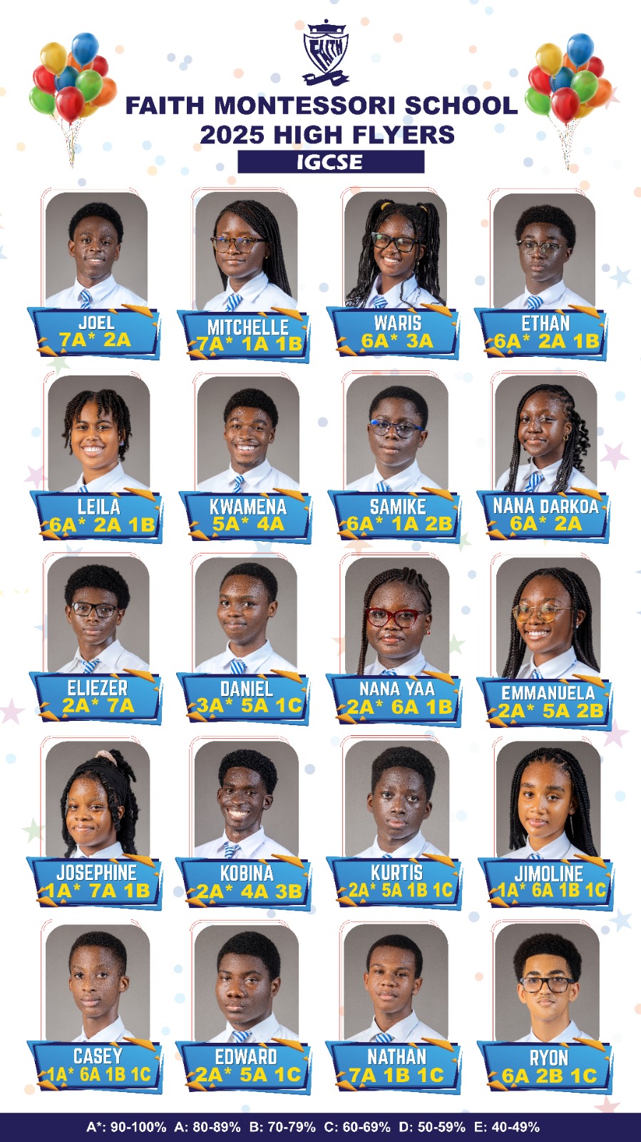 Faith Montessori School Directors and Teaching Staff extend their congratulations to the Form 5 students who received their examination results in August 2025.